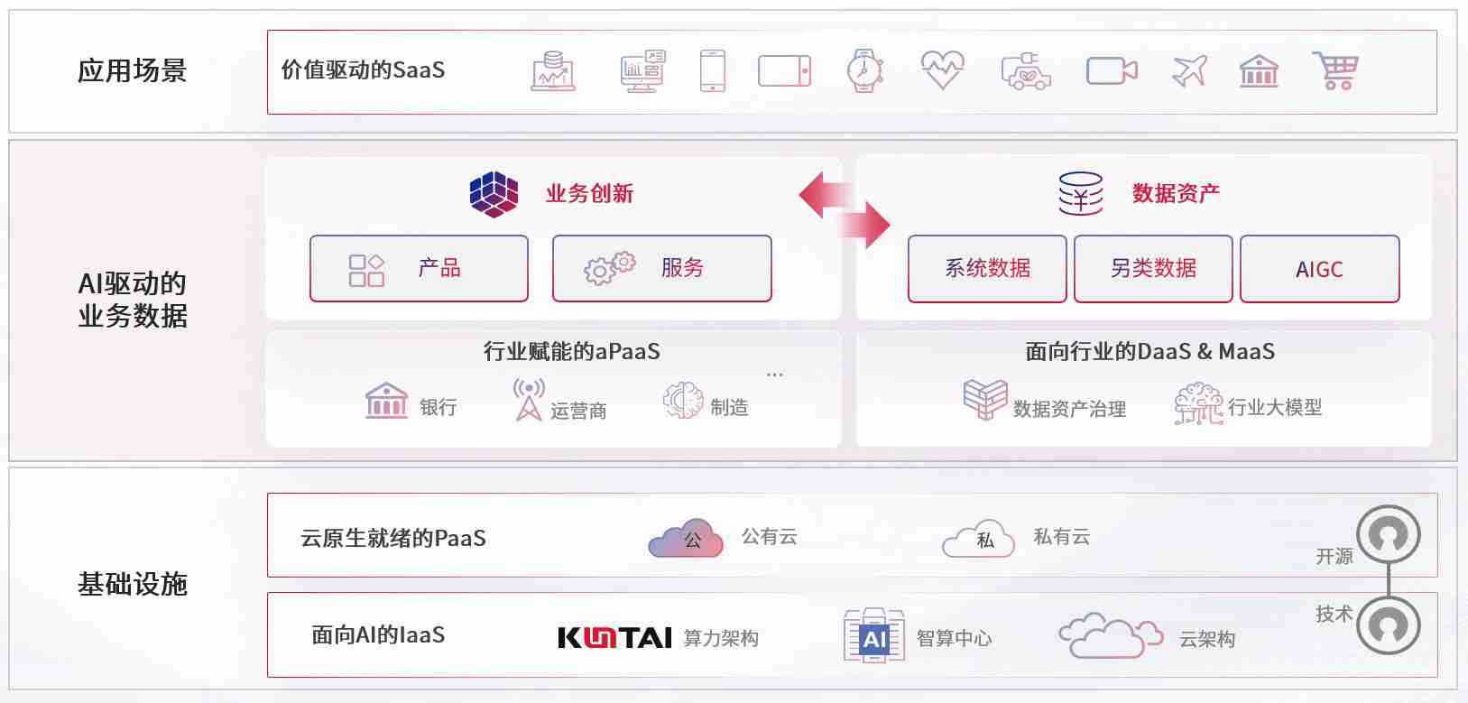 数字时代,,围绕企业数字化转型的关键要素,,,,988PAY数码开创性的提出数云融合战略和技术体系框架,,着力在云原生、、、、数字原生、、、、AI原生和信创产业上架构产品和服务能力,,,,为处在不同数字化转型阶段的快消零售、、、汽车、、金融、、、、医疗、、、政企、、、、教育、、、、运营商等行业客户提供泛在的敏捷IT能力和融合的数据驱动能力,,构建跨界融合创新的数字业务场景和新业务模式,,助力企业级客户建立面向未来的核心能力和竞争优势,,,,全面推动社会的数字化、、、智能化转型升级。。